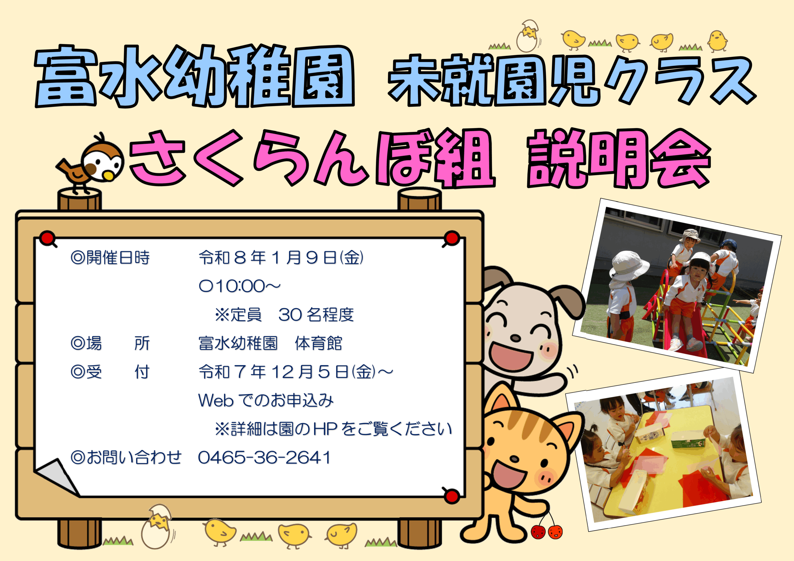 令和8年度 未就園児クラス さくらんぼ組 説明会の開催及び願書販売のお知らせ
